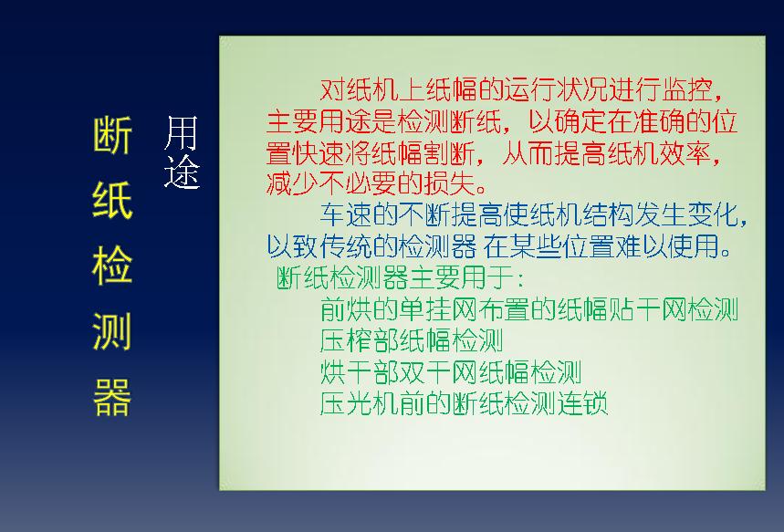 在多年為造紙廠的出產辦事中接收了多種歐洲造紙設備手藝并轉化接收利用于國際造紙機的設備配套,為紙機的主動化設備機能獲得更好的晉升,改良紙機操縱員的休息強度。 今朝首要產物為紙機上的主動化引紙系列及相干產物。持久辦事于國際外各造紙企業及造紙零件制作企業,具有杰出的諾言和品質保障。..